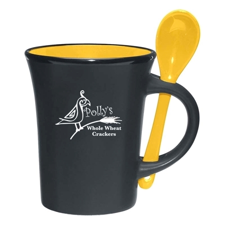 Custom Printed Promotional Mug from WithLogos.com 8 oz Aztec mug with removable spoon is a classy and sleek way to promote your brand. Meets FDA Requirements | Removable Matching Spoon