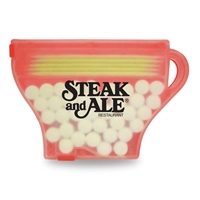 Freshen up your promotional campaign with this custom printed coffee cup shaped Pick 'n' Mints combo. This creative and fun designed combination includes 10 toothpicks and 35 sugar free mints. This container is KSA Kosher Certified, USA made and FDA approved, and 30% recycled plastic. All containers are frosted on front side. Color is on back part of container. Mints are a great to give away at conventions, restaurants and more!