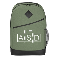 The High Line Backpack is available in four different colors and is made of 600D Polycanvas. It features a large front pocket, adjustable shoulder straps, a side mesh pocket and a double zippered main compartment with a padded back.