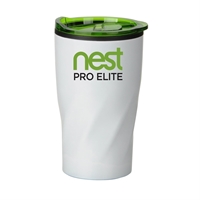 Get your hands on the coolest drinkware product this year. This 14oz. stainless steel bottle features a twisted body for a sharp, sleek look. Plastic lined. Bottle comes in White and the lids come in 5 colors: Blue, Clear, Green, Red and Smoke.